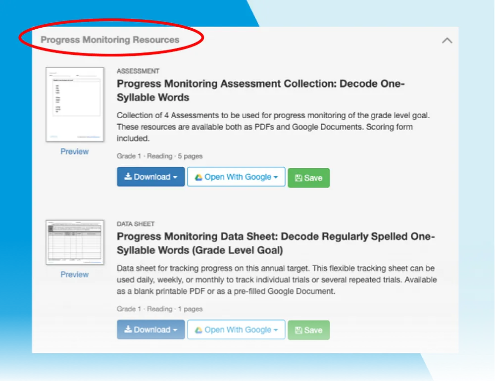 Having a concrete method for measuring progress towards goals makes for less subjectivity in how goals are assessed. We know monitoring progress with fidelity is challenging. The progress monitoring assessments found on Anchor Pages enhance the quality of service by increasing efficiency and ensuring alignment to the standards. Assessments should take less than 20 minutes to administer and they focus on assessing the requisite skills to master the standard. This paired with “just-right” goal text means that teachers are one step closer to ensuring that ALL students succeed.