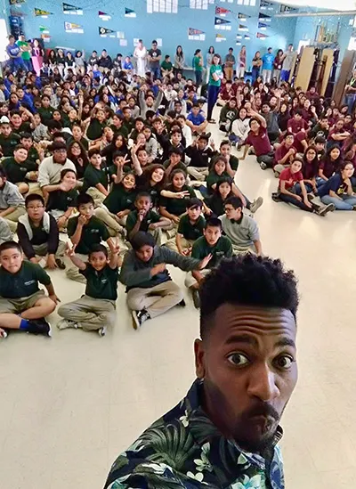 Selfie with his students at KIPP Heartwood Academy