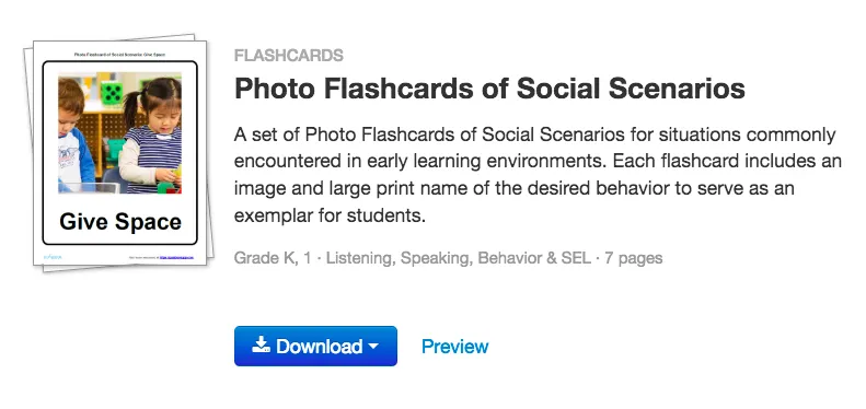 The Photo Flashcards of Social Scenarios Strategy Page offers teachers strategies, tips on best practice, and printable flashcards that address appropriate social interactions that students will encounter throughout their day. Ensuring that SEL is a part of a daily ECE routine is critical to students’ future success. Long-term academic and emotional outcomes are largely determined by the foundations around SEL that are built in early learning environments.