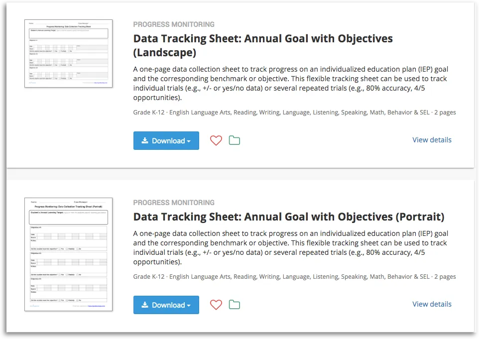 - It offers a plethora of printable tracking sheet options to choose from so teachers and can tightly match tracking sheets to specific goals.