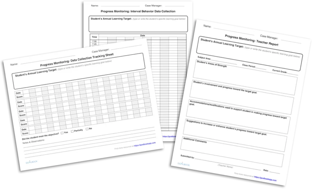 Fortunately our Progress Monitoring Strategy Page has printable tracking sheets that include those elements and more.