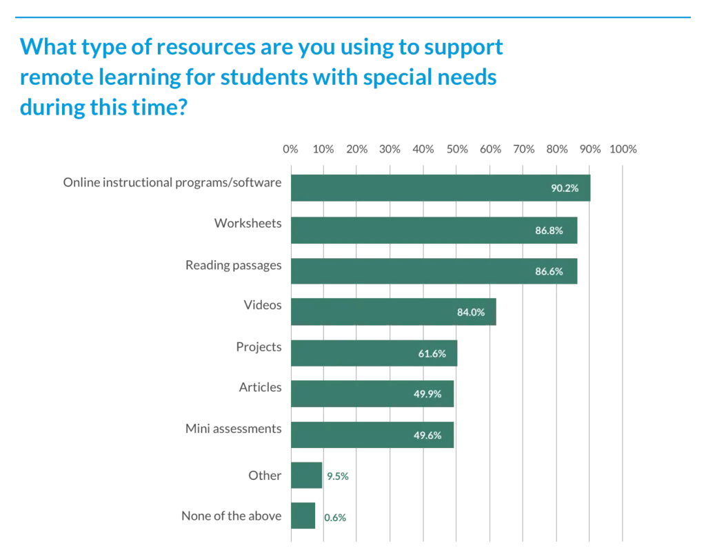 Responses were anonymously submitted in May 2020 from 383 respondents across the nation. The insights from remote learning as shared by special education leaders inspire us to open our hearts and minds to opportunities that exist, born out of successes and challenges from this moment in time, to transform instruction so that all students succeed.