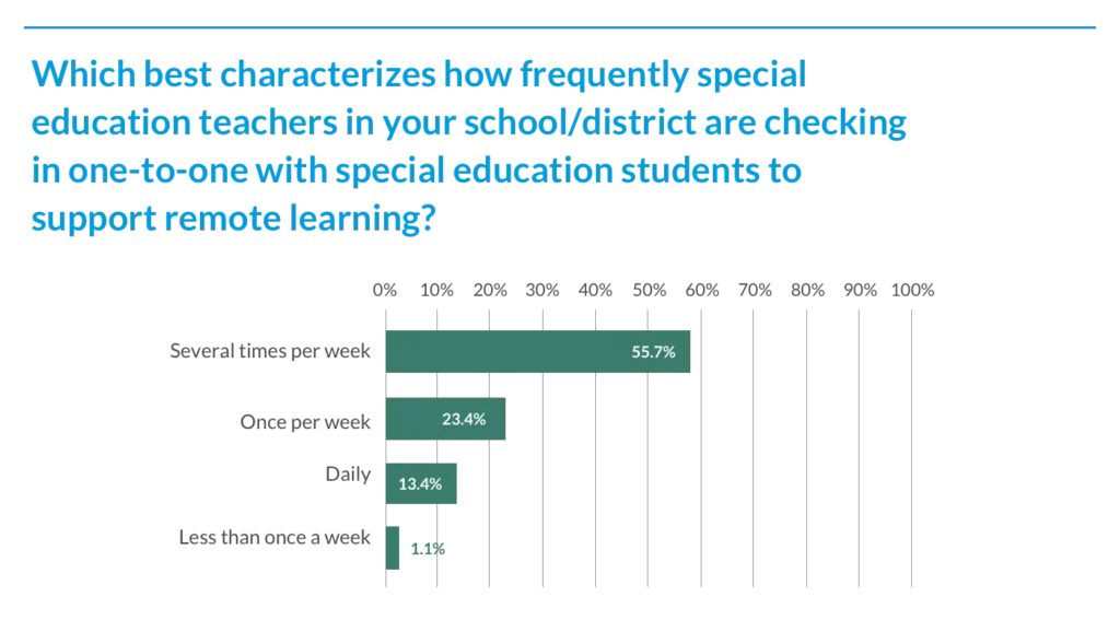Which best characterizes how frequently special education teachers in your school/district are checking in one-to-one with special education students to support remote learning?