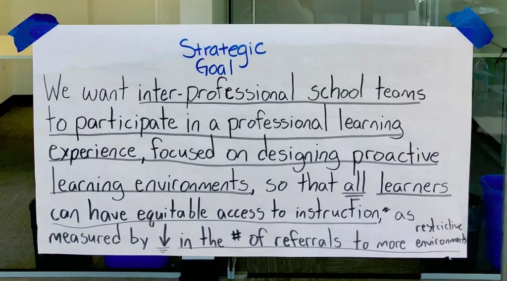 They came to LDI to devise a strategic plan to create positive, proactive, and inclusive learning environments that accommodate a greater level of student variability. Particularly, they wanted to ensure that the groups being excluded from classrooms were getting what they needed.